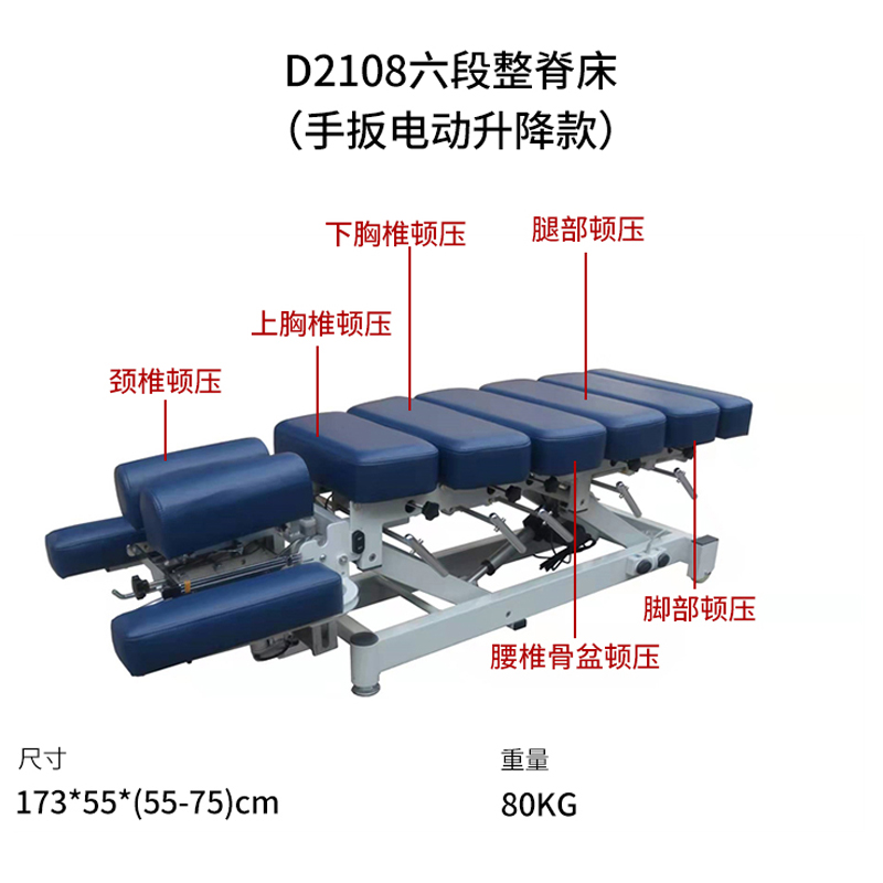 D2108六段整脊床(手扳電動(dòng)升降款)